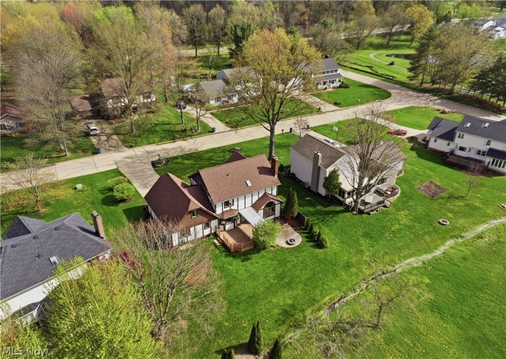 Fabulous location near the Prestwick Golf Course in Green Local Schools! This very clean Tudor-style two-story offers approximately 2,600+/- sq ft with 4 bedrooms and 2.5 bathrooms. The main level features a convenient first-floor laundry and private office. Spacious kitchen opens to a deck and stamped patio with firepit?perfect for enjoying warmer weather and entertaining. Filled with natural light throughout, this home sits in a lovely setting within a walkable neighborhood, just minutes from everyday amenities.